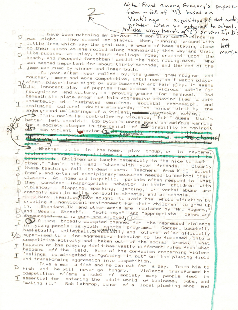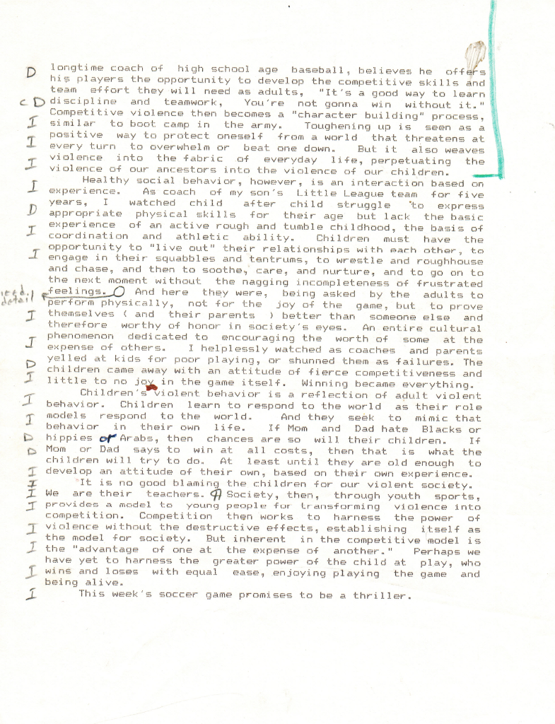 Sports and Violence (circa 1993)